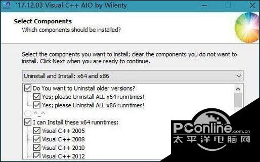 3、在安装的时候勾选全系列的visual c++(有2005、2008、2010/2012等等)然后点击 next 进行安装即可!