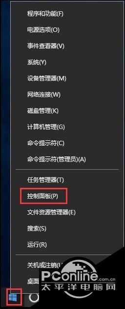 1、按下“Win+x”组合键或在开始菜单单击右键,在打开的菜单中点击“控制面板”;