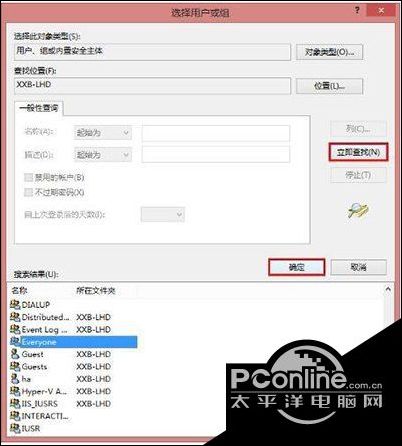 6、点击【立即查找】,在搜索结果框中双击点击“Everyone”;