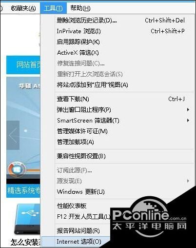 1、打开 浏览器,然后按一下“ALT”键呼出菜单栏,然后点击“工具”,然后点击“Internet 选项”;