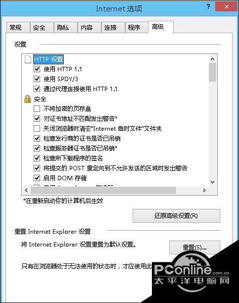 2、在“Internet 选项”窗口中,在选卡上选择“高级”选卡;
