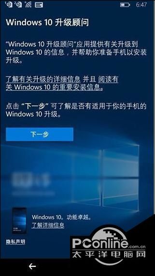 确定手机已支持升级Win10 Mobile后,在手机中下载安装Upgrade Advisor升级顾问( 点此链接 可下载)。