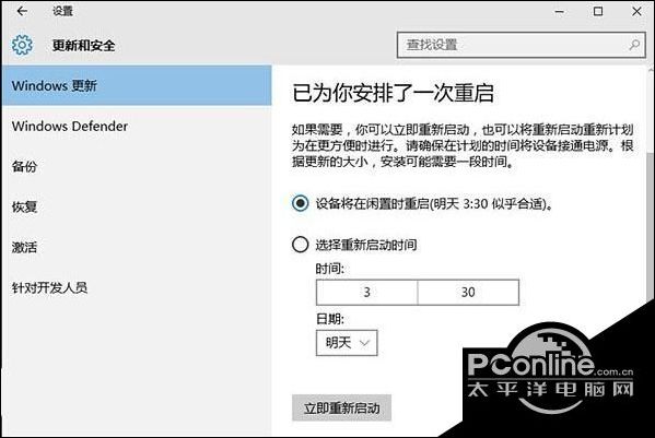 3、默认状态下升级包会自动下载并安装,当系统提示“需要重新启动”后,可以点击“立即重新启动”进行后续安装步骤;也可以在合适的时间手动重启电脑进行安装。