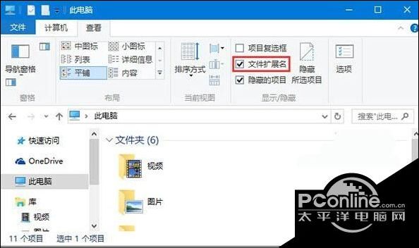 你可以在资源管理器的“查看”菜单中勾选“文件扩展名”,如下图所示: