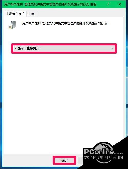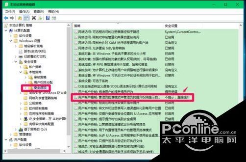 如果需要取消软件安装或运行电脑中程序需要密码的设置,进入本地组策略编辑器,把【管理审批模式下管理员的提升提示行为】的安全策略设置为:不提示,直接提升,别忘记了点击:应用 - 确定。
