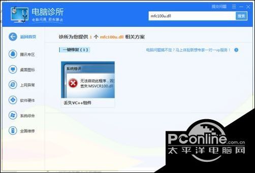 想必不少windows10系统用户都遇到过dll文件加载失败的情况。比如,一位朋友反馈自己在使用win10电脑过程中,发现mfc100u.dll加载失败了,这该怎么办呢?下面,就随PConline小编看看该问题的具体解决方法。