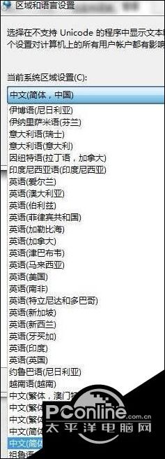 6、进入设置界面后,将当前系统区域设置为“中文”。