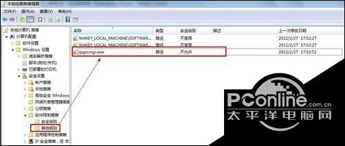 4、除上述之外,在“软件限制策略——其他规则”中,看看管家路径的安全级别,如果是“不允许”的状态,右键删除即可。