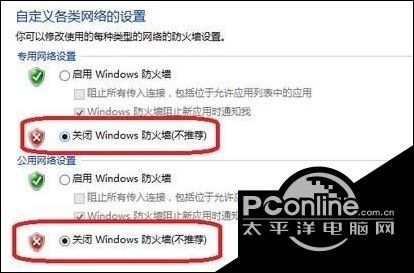 4、选择“关windows防火墙(不推荐)” 点击确定;