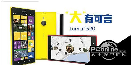 Lumia 1520采用6英寸1080P全高清屏幕,搭载高通800四核处理器,运行2GB内存以及32GB存储空间,内置2000万像素摄像头,具备出色的拍照表现。