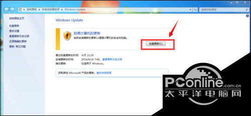 7.重启之后会自动弹出WindowsUpdate,我们点击“检测更新”。