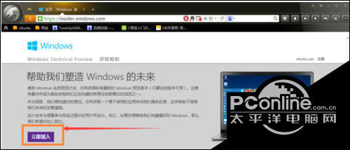 2.登录之后,我们这里直接点击“立即加入”,加入微软预览版的试用。