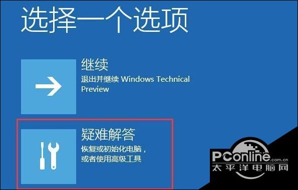 4、之后Win10系统会重新启动,到达“高级启动”后,我们再点击“疑难解答”;