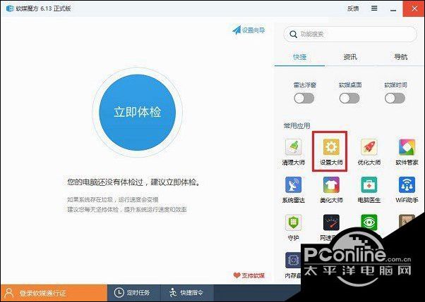 1、在Win10电脑中安装“ 软媒魔方 ”工具,然后点击右侧的“设置大师”,如下图。