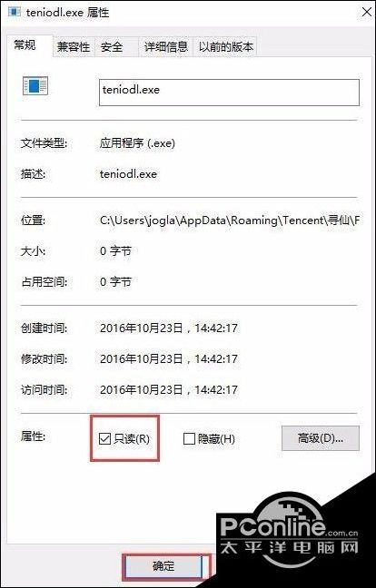 6、然后右键覆盖后的teniodl.exe文件,点击属性,在属性选项卡中把文件权限改成只读。