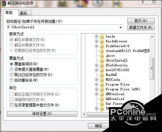 3、选择非C盘的某个文件夹,例如这里选择D:\GhostInstall文件夹,点击确定,等待解压完成;