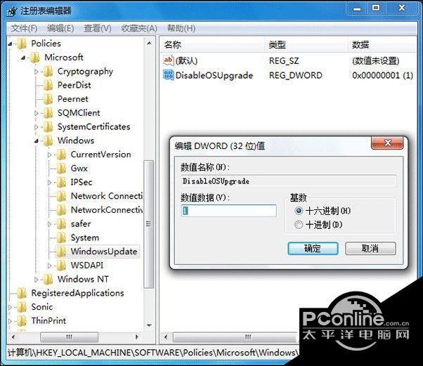 2、定位到HKLM\SOFTWARE\Policies\Microsoft\Windows\WindowsUpdate
