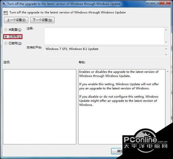 此后,升级Win10的推送功能被关闭,如果用户想升级Win10,需要依靠手动更新,或者再次在组策略开启升级推送功能。