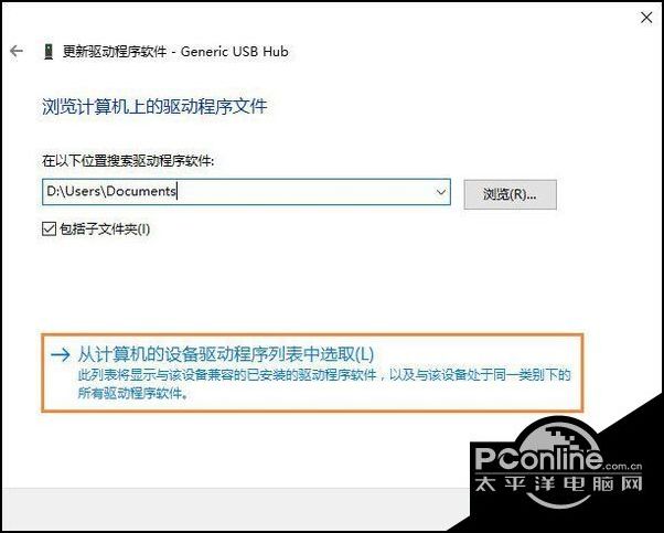 4、选择最下方的“从计算机的设备驱动列表中选取”;