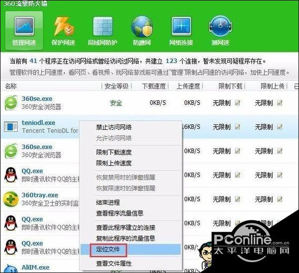 1、首先打开腾讯游戏,我们使用360安全卫士加速球发现teniodl.exe进程在偷偷上传流量,严重影响网速;