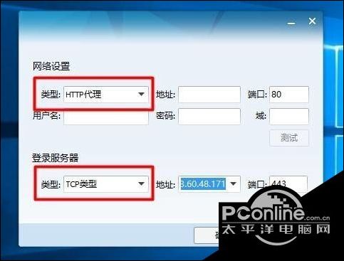 在QQ程序登陆界面中,点击右上角的“设置”按钮,从打开的新界面中,选择“HTTP代理”和“TCP类型”,点击“确定”后再次尝试登陆QQ程序。