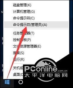 右击桌面左下角的“Windows”按钮,从其右键菜单中选择“命令提示符(管理员)”项。