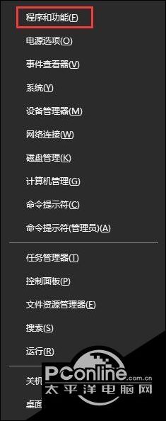 2、Win+x打开超级菜单,点击【程序和功能】。