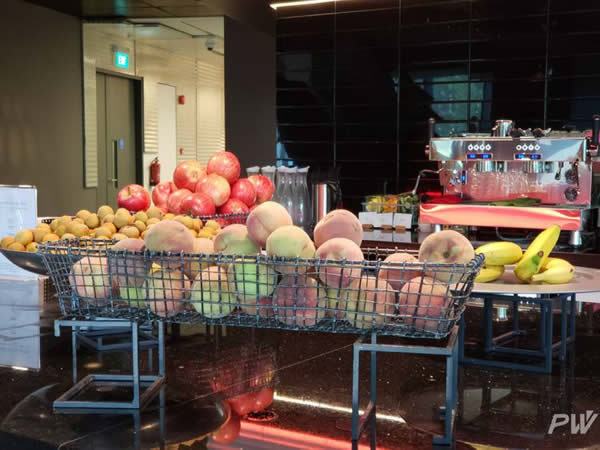 这可能是 Google 员工最幸福之处,无论你在哪一层办公,都有美食供应。你不需要下楼去食堂就餐,只需要到泡咖啡的地方就可以自取水果和正餐。