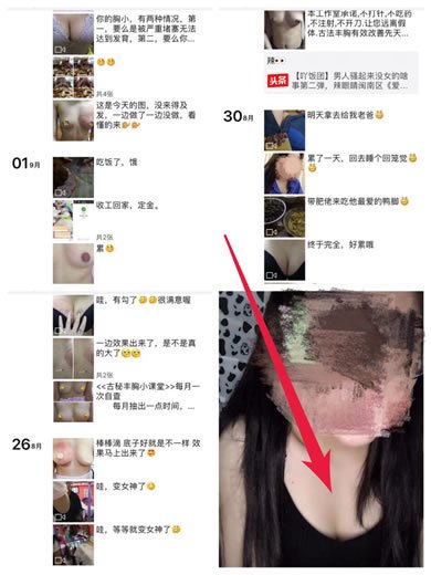 然后她就去帮人家拉客户,天天朋友圈发别人胸部按摩变大的视频和照片,看着我都心动了,有一次她过来找我,说这个丰胸效果超级好,不好不要钱,说让我老婆去做,我说你做了吗?