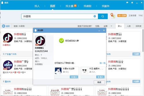 除了某宝,同类的刷点赞评论转发的渠道还有QQ群,这绝对是一个好渠道。打开QQ的查找功能,切换到找群界面,搜索关键词:抖音刷,就可以找到很多商家。