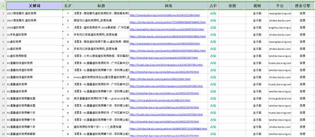 比如: 百度贴吧,那我们发布的时候,需要先把 第二份报表里面百度贴吧已经排名的词 筛选出来,放到第一份报表里面,高亮有重复的词,这样贴吧没排名的词就一眼看出来了,主做没排名的词,当你首页有3-5个平台的时候,基本上就满满的霸屏了,而且毫不费力。