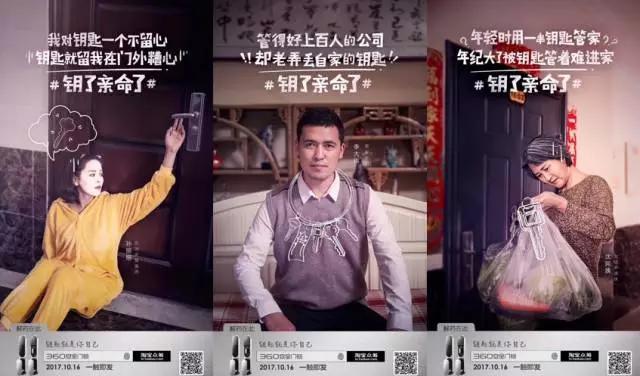 海报通过一组充满细节的人设设定(年轻插画师、CEO、退休老人等),让不同年龄、职业的用户群体都能从中找到共鸣,凸显360安全门锁“钥匙就是你自己”相比于传统门锁的优势。