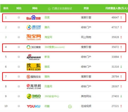 截至 2017 年 6 月,中国网民规模达 7.51 亿;2017年8月份的艾瑞数据显示,用PC端搜索引擎的人数,百度覆盖4.8亿人,360搜索覆盖3.5亿人,搜狗搜索覆盖2.8亿人。超过一半的网民依然会用PC端搜索引擎。