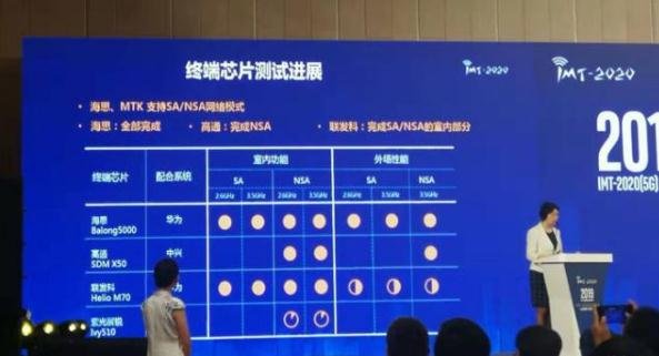 7月17日,根据IMT-2020(5G)推进组组长王志勤公布的信息显示,目前在IMT-2020(5G)推进组测试的四款5G芯片包括:华为海思的巴龙5000、高通骁龙X50、联发科Helio M70和紫光展锐的春藤510。其中,在组网方式方面,只有高通骁龙X50只支持NSA,而其他三款5G芯片均支持NSA和SA。