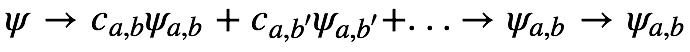 上式中第一个箭头表示做了一个A测量,我们获得的是一系列a确定,但b不确定的本征函数的叠加,然后我们做B测量,我们获得的是a,b都确定下来的本征函数,然后我们再做A测量或B测量,我们读取的物理量A、B的取值将都是a和b。