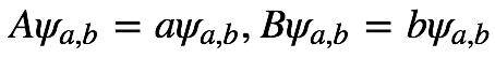 假如我们现在不做A测量,对某个另外的物理量B做测量,假如A,B两个算符对易——[A, B]=0,这意味着存在A、B的共同本征函数:ψab,使得: