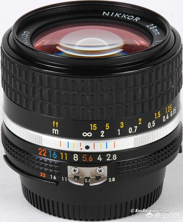 镜头上有红有绿的数字,实际上是老镜头的一些参数标示,跟现代化的自动对焦镜头上的字母标示是完全不同的。下面我简单举个例子来说: