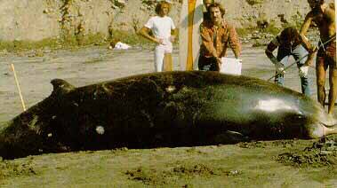 (25.秘鲁中喙鲸。是体型最小的喙鲸。长期以来,科学家只是在秘鲁的几个菜市场见过秘鲁中喙鲸的部分标本,上图是 1988 年科学家首次在秘鲁发现的秘鲁中喙鲸的完整……尸体)