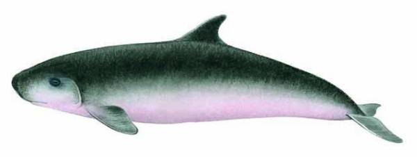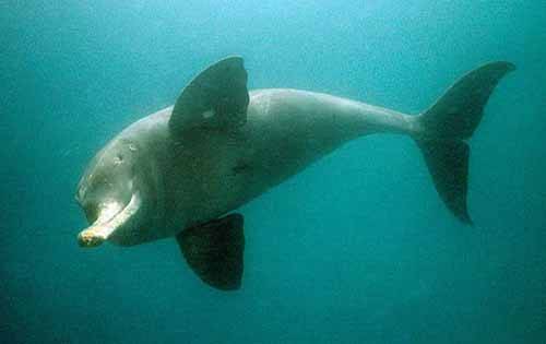 (18.加湾鼠海豚。嘴巴附近会有一块小小黑斑。只分布在加利福尼亚湾最北部的狭小区域内,极度濒危,现存个体可能不足一百头)