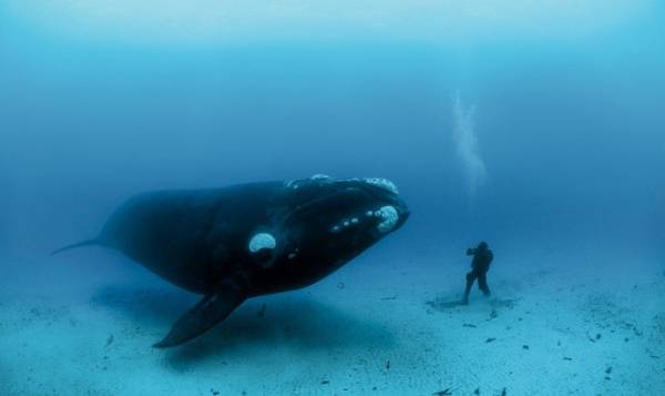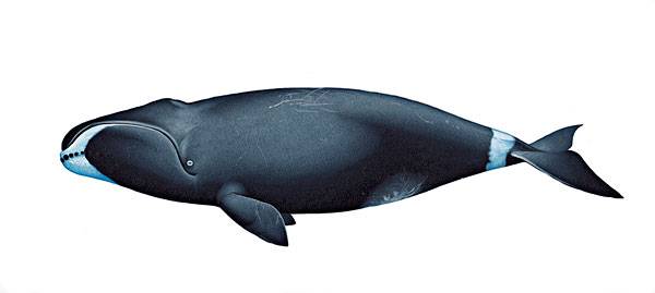 (1.弓头鲸,嘴巴附近会有不规则的白色斑点)