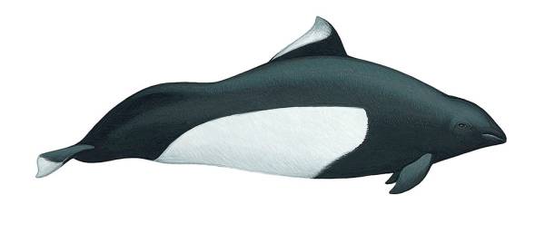 (68.黑矮海豚。分布在智力沿海,最南可达合恩角。曾经数量很多,有过 4000 头一群共游的记录。但是智利渔民大量捕杀黑矮海豚用来作为诱饵捕捉大王蟹,让这一生物数量锐减)