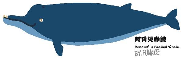 (30.银杏齿中喙鲸。人类对其几乎一无所知……在日本出现过一些搁浅的尸体,它的龅牙是喙鲸里最大的,且呈银杏叶状)