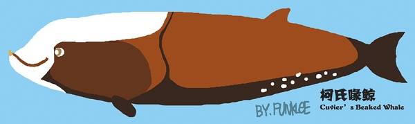(36.长齿中喙鲸。比较好辨识的喙鲸,最大的特色就是超级长的獠牙了,成年鲸的獠牙能露出 30 公分长,有的甚至会两根獠牙在嘴巴上部交汇,导致鲸不能完整的张开嘴)