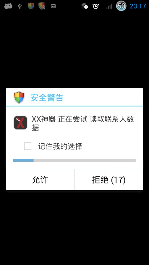 假如你安装了任意一款权限管理的软件,那么你将会看到以下画面: