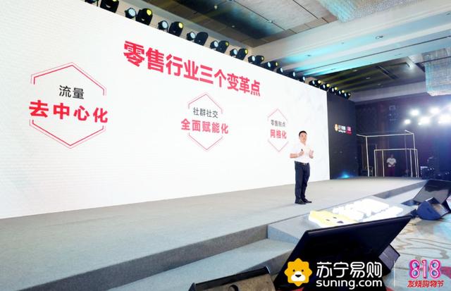 侯恩龙提出线上流量去中心化、社群社交全面赋能化以及零售触点网格化三点为苏宁的增长做了注释。
