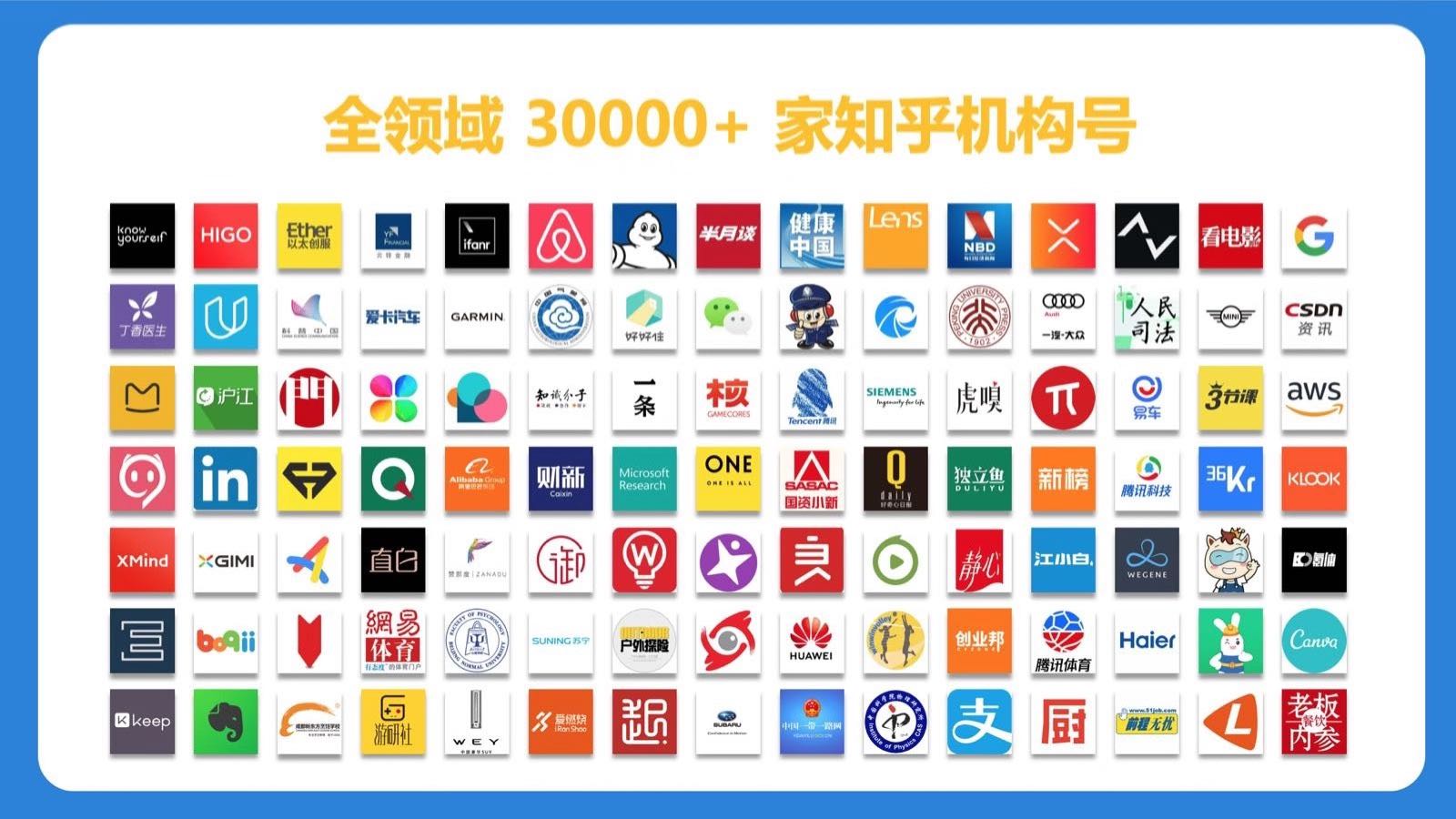 数据显示,目前,超过 3 万家的知乎机构号,涵盖了媒体、知名品牌、中小企业、政府机构等,每一种类型、每一个行业都涌现出了备受网友喜爱的机构号。它们一共创造了 140 万篇、共计 19 亿字的知识内容,获得了超过 5480 万次赞同和 700 万次感谢。