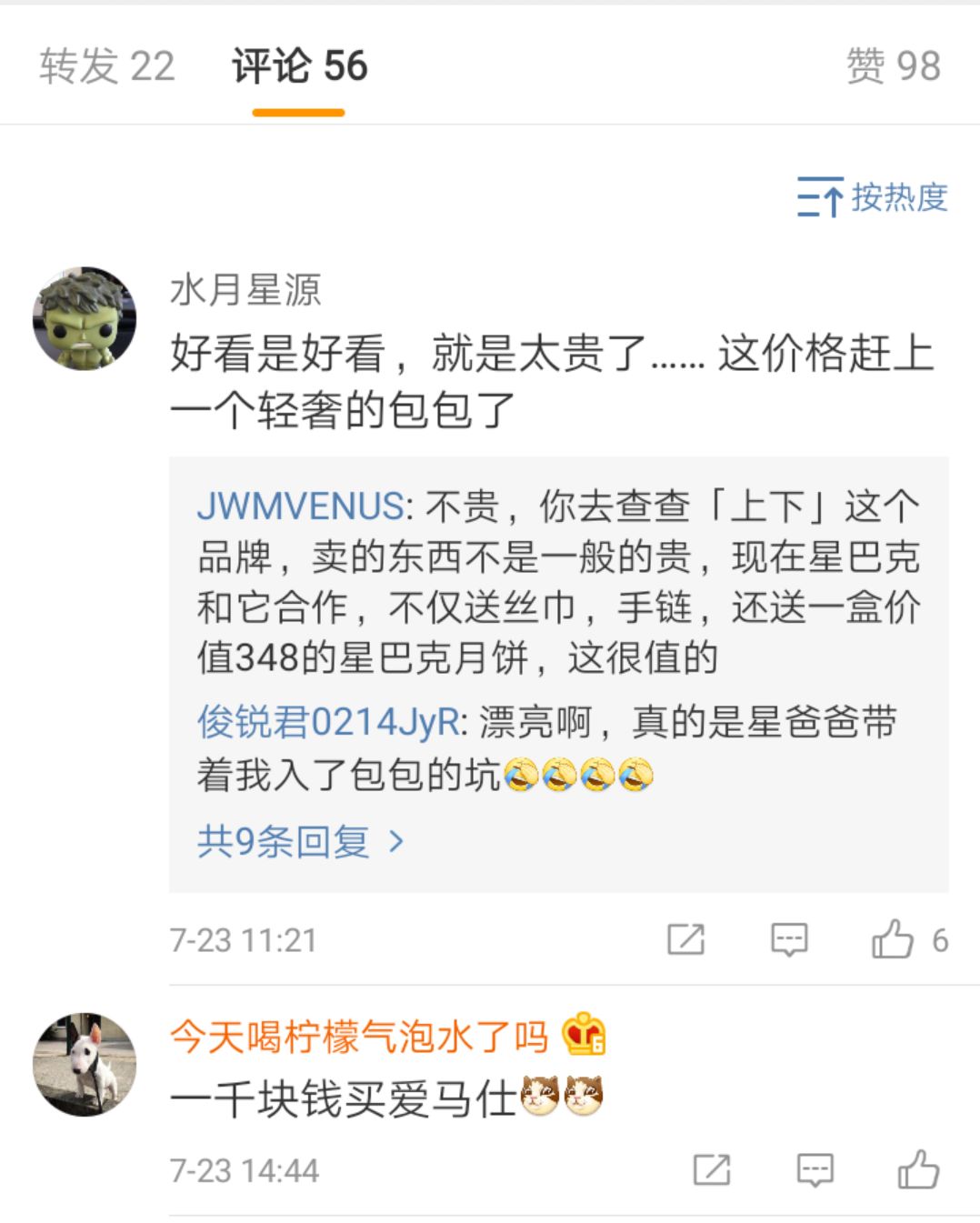 其他月饼卖几十块,星巴克的月饼可以卖几百块,同样这几百块的月饼也在抬高星巴克的价值。