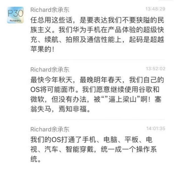 事实上,余承东之前也曾透露了一些华为自研系统细节,比如华为的OS打通了手机、电脑、平板、电视、汽车、智能穿戴,统一成一个操作系统,而新的系统还兼容全部安卓应用和所有Web应用,新系统最快今年秋天,最晚明年春天面市。