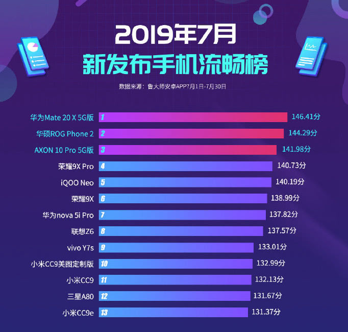 不过,在鲁大师发布的另一份《2019年7月新发布手机流畅榜》中,华为Mate 20 X 5G综合得分位居第一,超过了华硕ROG Phone 2、中兴天机AXON 10 Pro等骁龙855机型。据悉,鲁大师的“手机流畅度”测试环节包括桌面滑动、系统文件拷贝、网页加载、APP整体运行速度、开机自启动等项目,这也说明麒麟980手机在日常使用中表现是相当出色的。