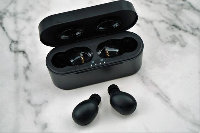 首先我们可以看一下这款蓝牙耳机所配的充电仓。整个充电仓相对来说会比较简约而又精致,当然作为日常使用来说,便于携带还是十分重要的。而这款充电仓据小编测量长为80mm,而高为35.5mm,可以说还是会比较小巧,方便携带。而它整体重量虽然小编没有进行准确的称重,但是根据官网信息反馈单边耳机约为4.2g,所以在佩戴也不会有特别的重量,相当轻便。这款蓝牙耳机充电仓采用的是黑色外观设计,与耳机交相辉映,相得益彰。除此之外,我们可以看到其正面采用的是卡扣设计,可以有效防止充电仓在背包中无意打开,同时我们可以看到,耳机与充电仓之间有磁吸固定,可以对耳机起到了很好的保护作用。